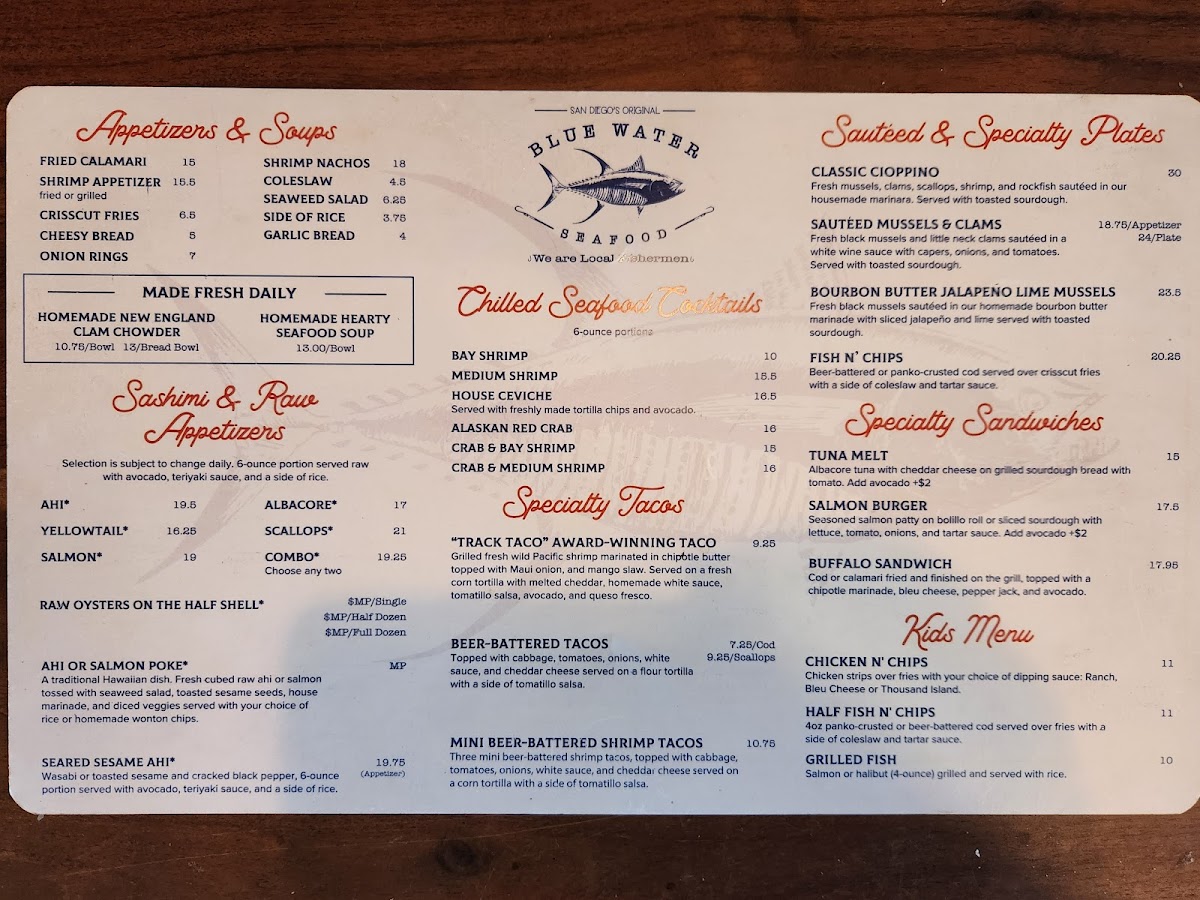 Welcome to Blue Water Seafood Ocean Beach, a hidden gem nestled at 5083 Santa Monica Ave, San Diego. This seafood restaurant captivates not only with breathtaking ocean views but also with a menu that celebrates the freshest catches of the day.